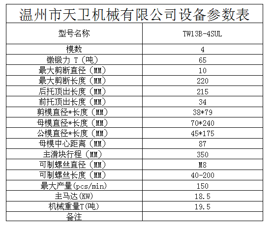 您當(dāng)前的位置:首頁(yè) / 產(chǎn)品中心 / 四模四沖冷鐓機(jī) / └ TW13B(M8)全自動(dòng)多工位冷鐓機(jī) / TW13B-4SUL全自動(dòng)多工位冷鐓機(jī)